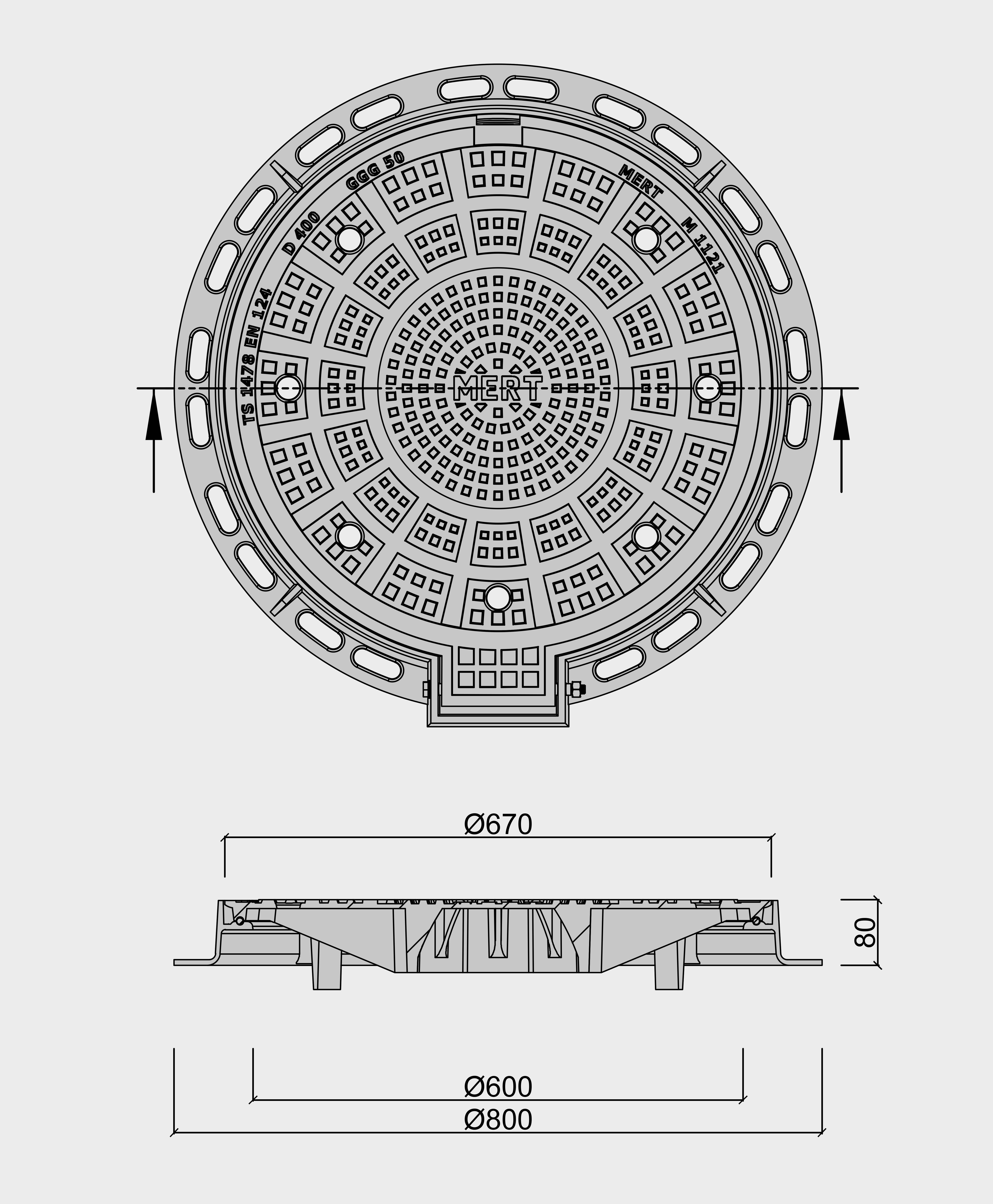 M1125 Regard Rond en Fonte Ductile D400 Catégorie : Manhole Covers > Highways and Roads Poids 75 ± 3 kg Classe de charge D400 Système de verrouillage Otomatik Kilit