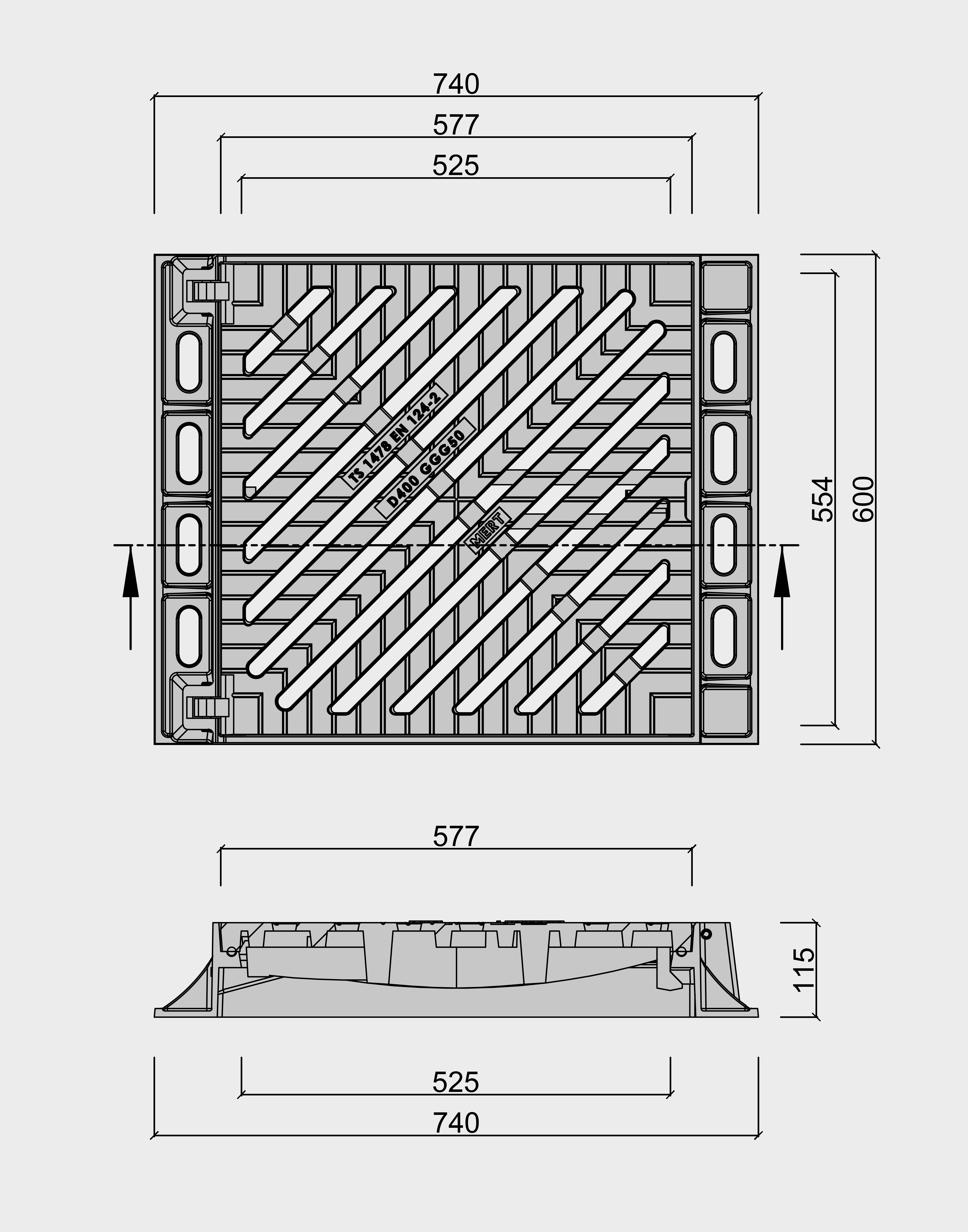 Dimensions extérieures: 600 mm x 740 mm x 115 mm