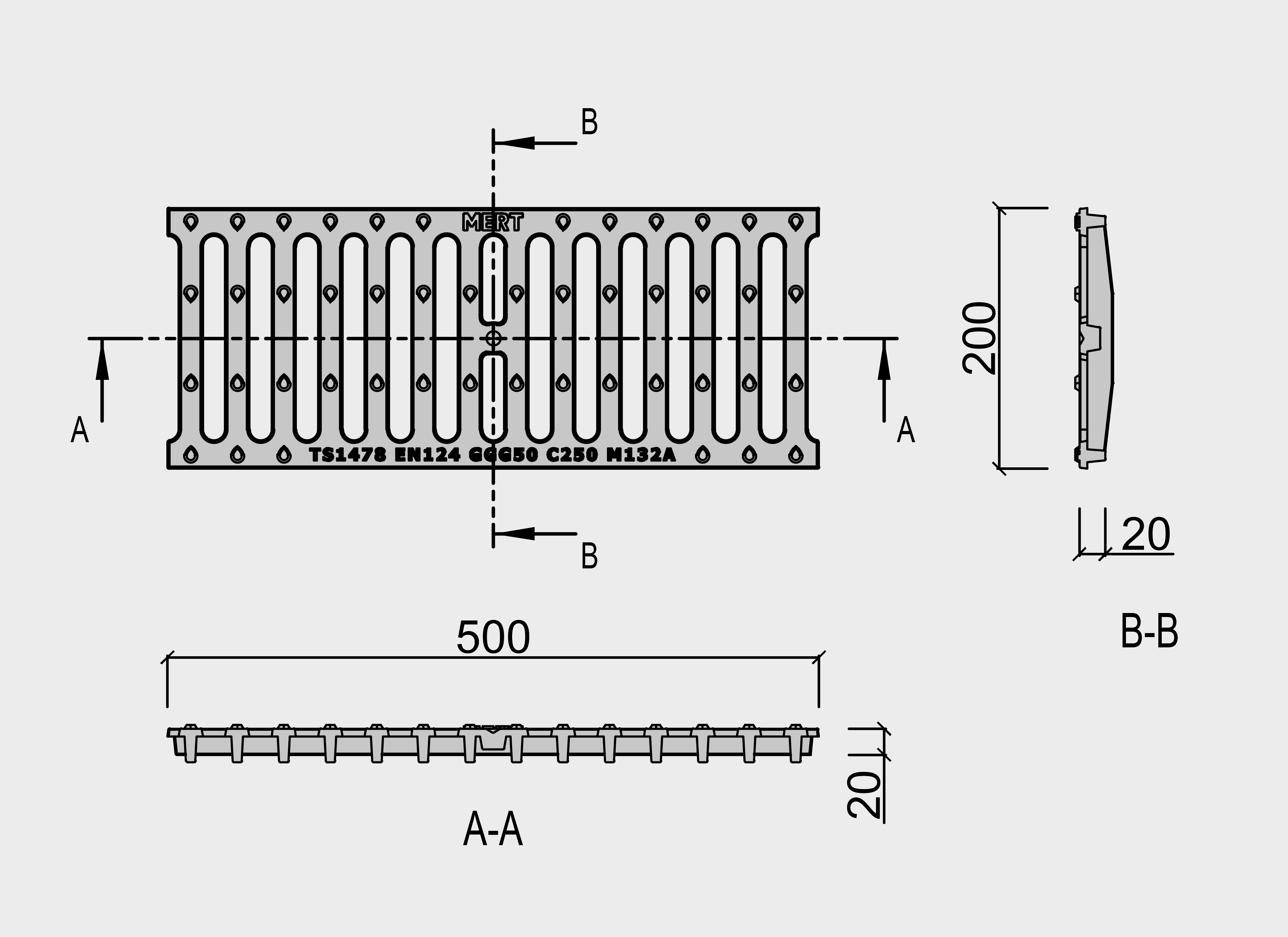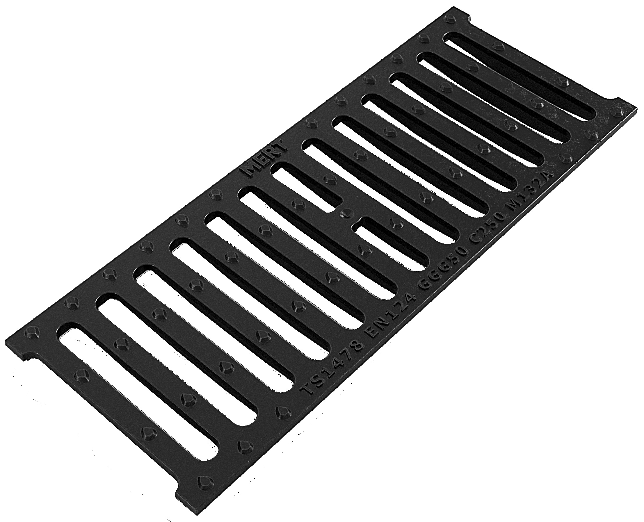 M132A Grille de Canal Linéaire en Fonte Ductile (200 mm x 500 mm x 20 mm) C250 Catégorie : Linear Gratings > Poids 7 ± 1 kg Classe de charge C250 Système de verrouillage Hiçbiri