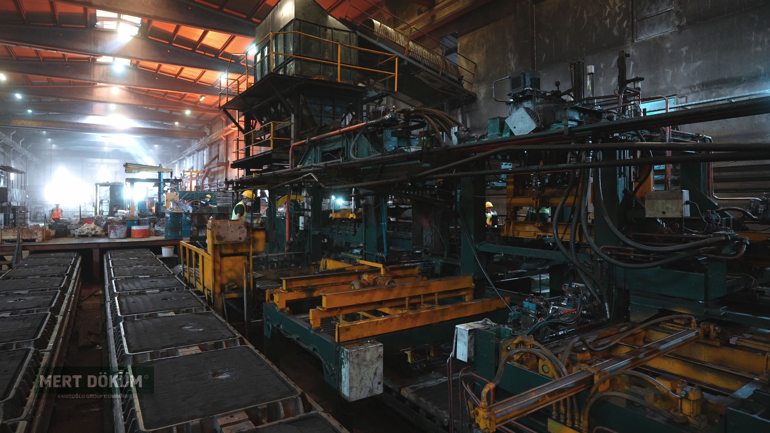 Elazığ en Turquie, dont 30 000 m2 d'espace clos. Avec deux unités de fusion d'une capacité de 9 tonnes/heure et 120 tonnes/jour, et une ligne de moulage automatisée produisant 80 moules/heure de dimensions 1350 mm x 1100 mm et d'une profondeur de 30x30, ainsi que des lignes de broyage et d'assemblage robotisées, nous fabriquons couvercles de regards, grilles anti-pluie et filtres conformes aux normes internationales.